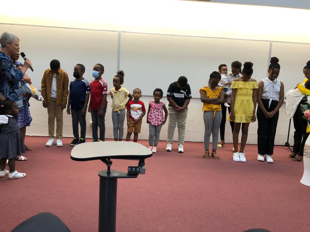 Sunday School Children during Sunday Service while they were being prayed for before going to their Sunday school class.